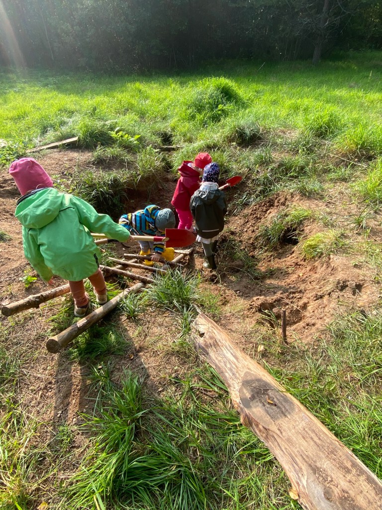After a few days at home, one of the teachers called me and asked how I was feeling. Some of the other teachers were also sick, and since I was the one who was feeling the best, they needed my help with the kids outside in the forest. I was so happy to get out of the flat and to feel useful, and the forest is such an amazing place. We took the 3/4 year olds for the first time, so for them it was more about explore and play than a real class.