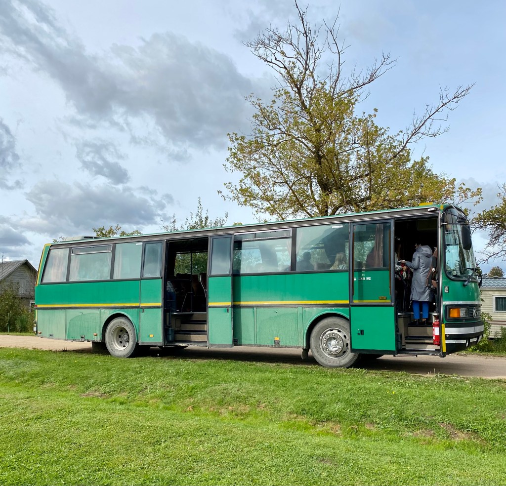 Tuesday was booked for a school kids excursion day. Or as we Dutchies like to call it, schoolreisje! We went by this old school bus to Krāslava, some 50 km away from Preiļi, to go to this craft center. We could choose between 3 workshops, pottery, wood burning and leather-working.