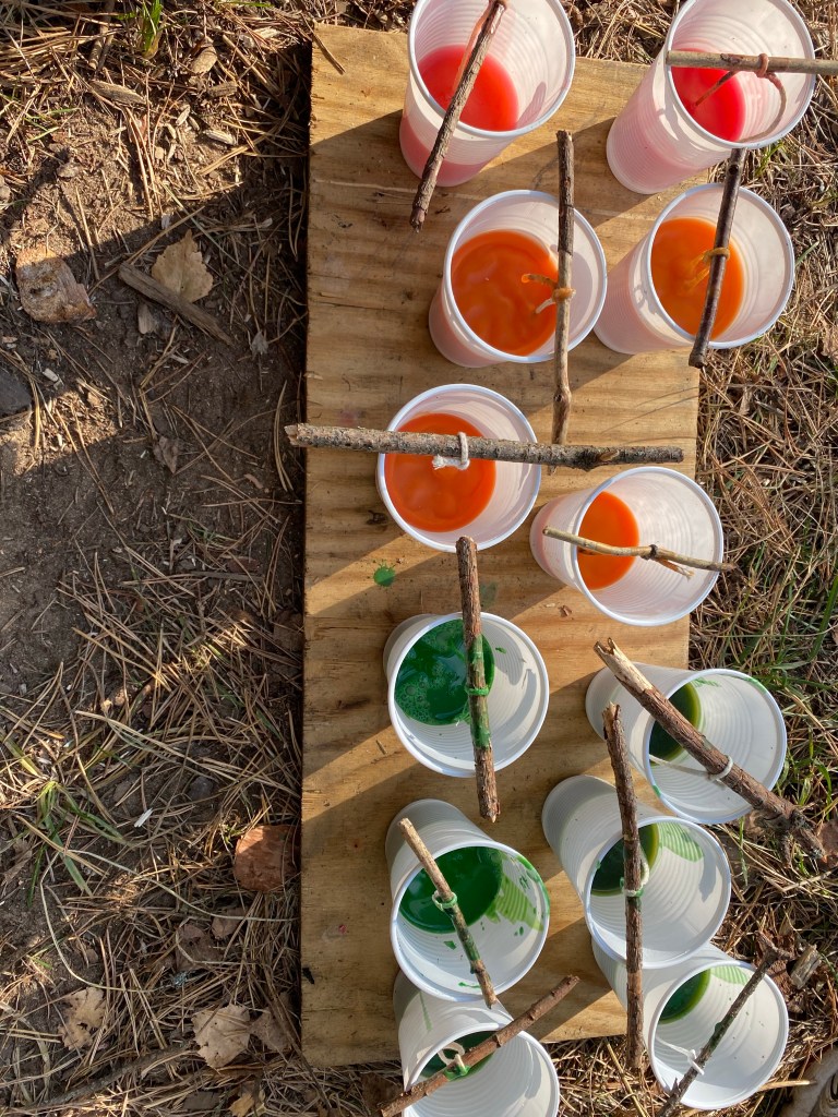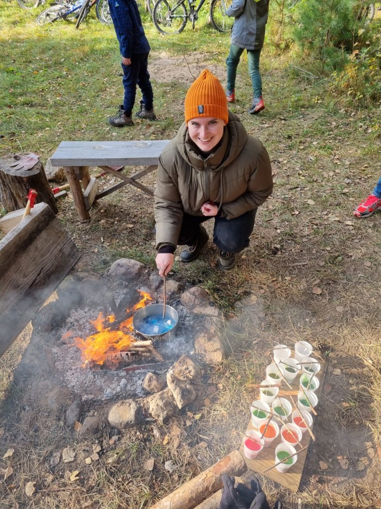 The next day, all the school kids were in the forest, to get in the spooky mood by telling ghost stories whilst surrounded by spiky trees, make their own herbal tea over the bonfire and creating their own candles. Well, we created their candles.