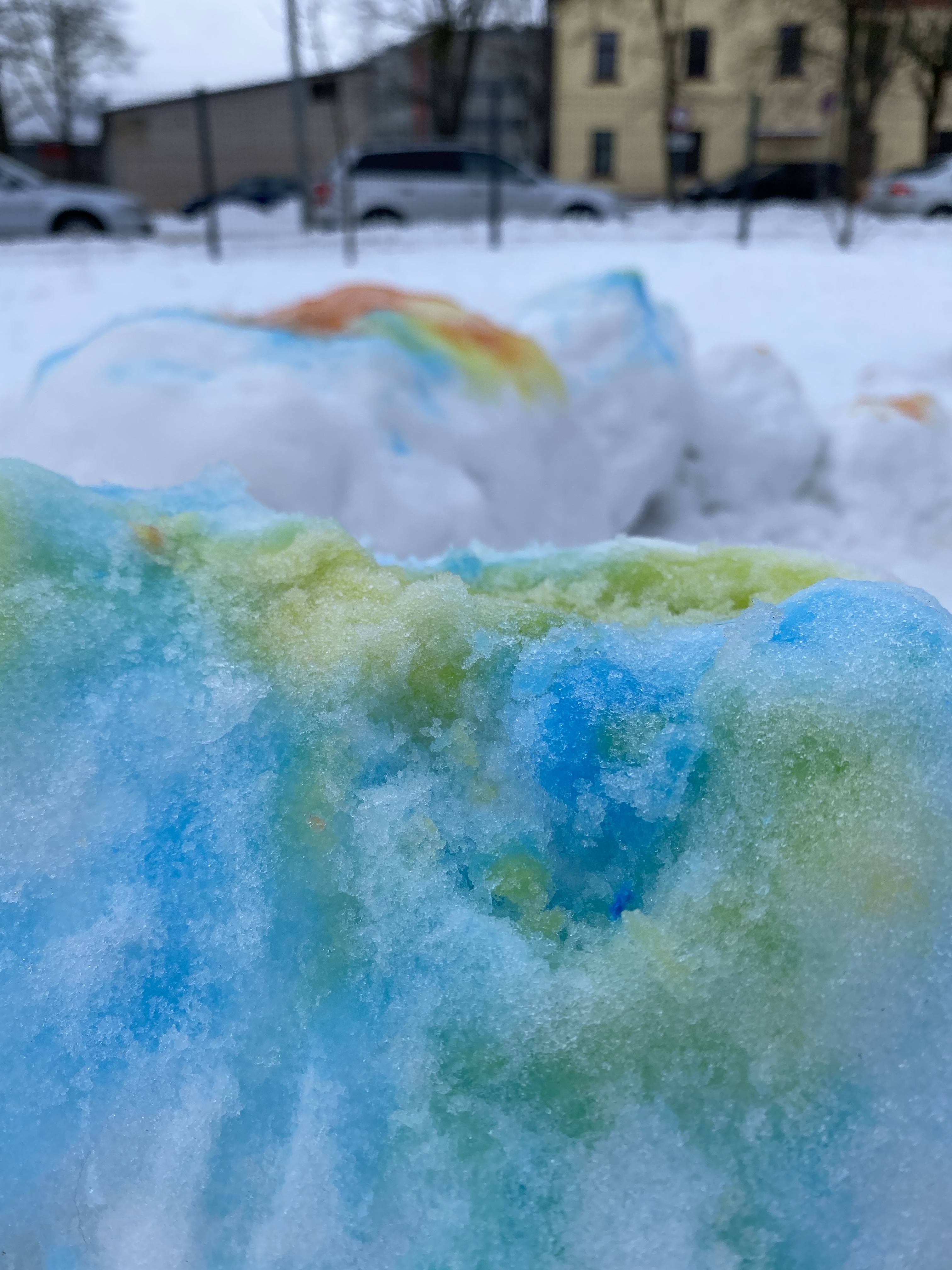 After that weekend, we heard there were going to be some changes at school, so it was time for me to return to pre-school! I missed those little buggers, although the school kids have kinda grown on me too. But no worries on that part, for my English lessons with them are still on the menu. The snow has returned in full blast, so it is sled rides and mouthfuls of snow hours on end for them. To make it more fun and colourful, the teachers came up with the idea to paint the snow wall, only to have it end up being everywhere.