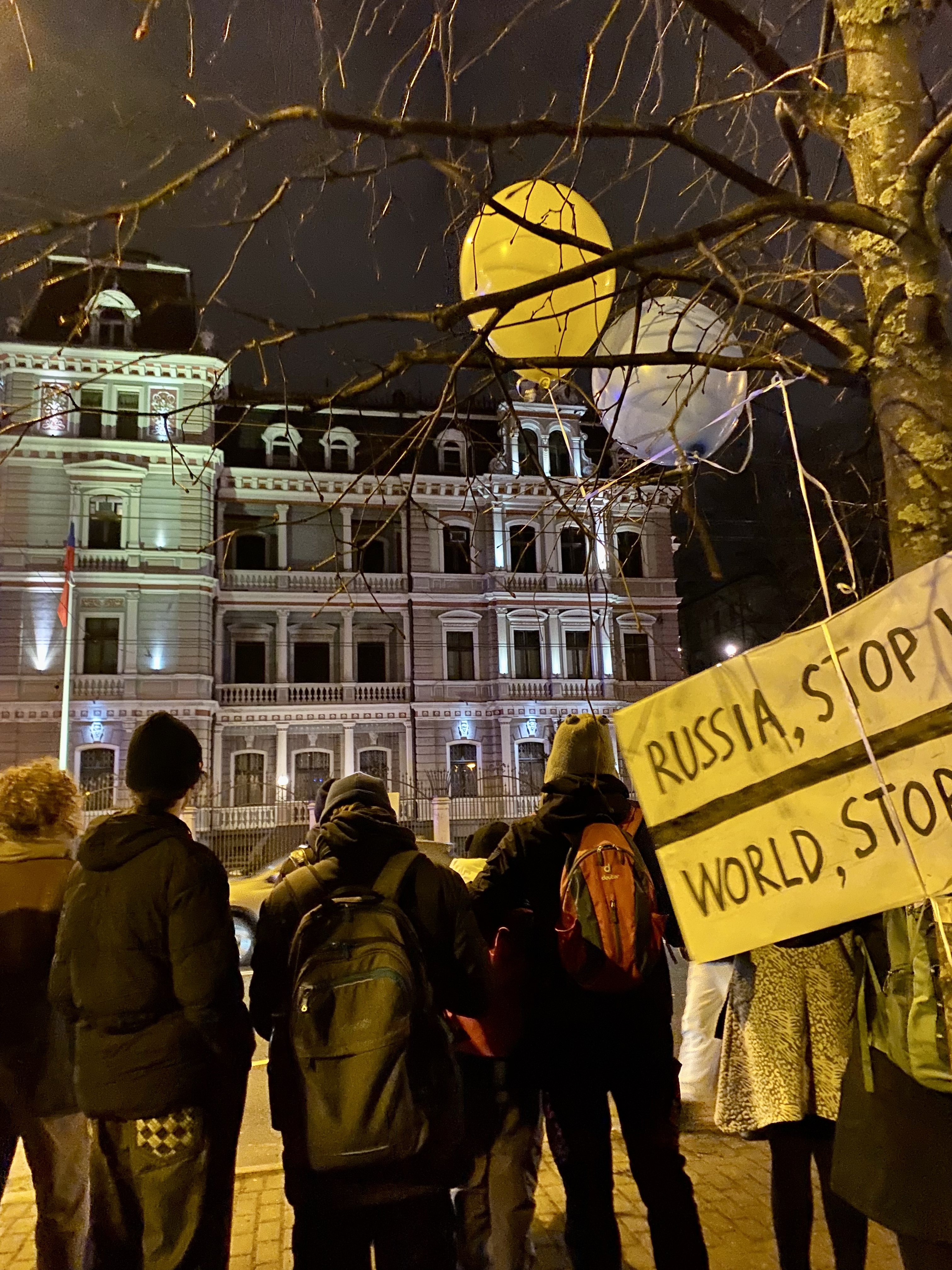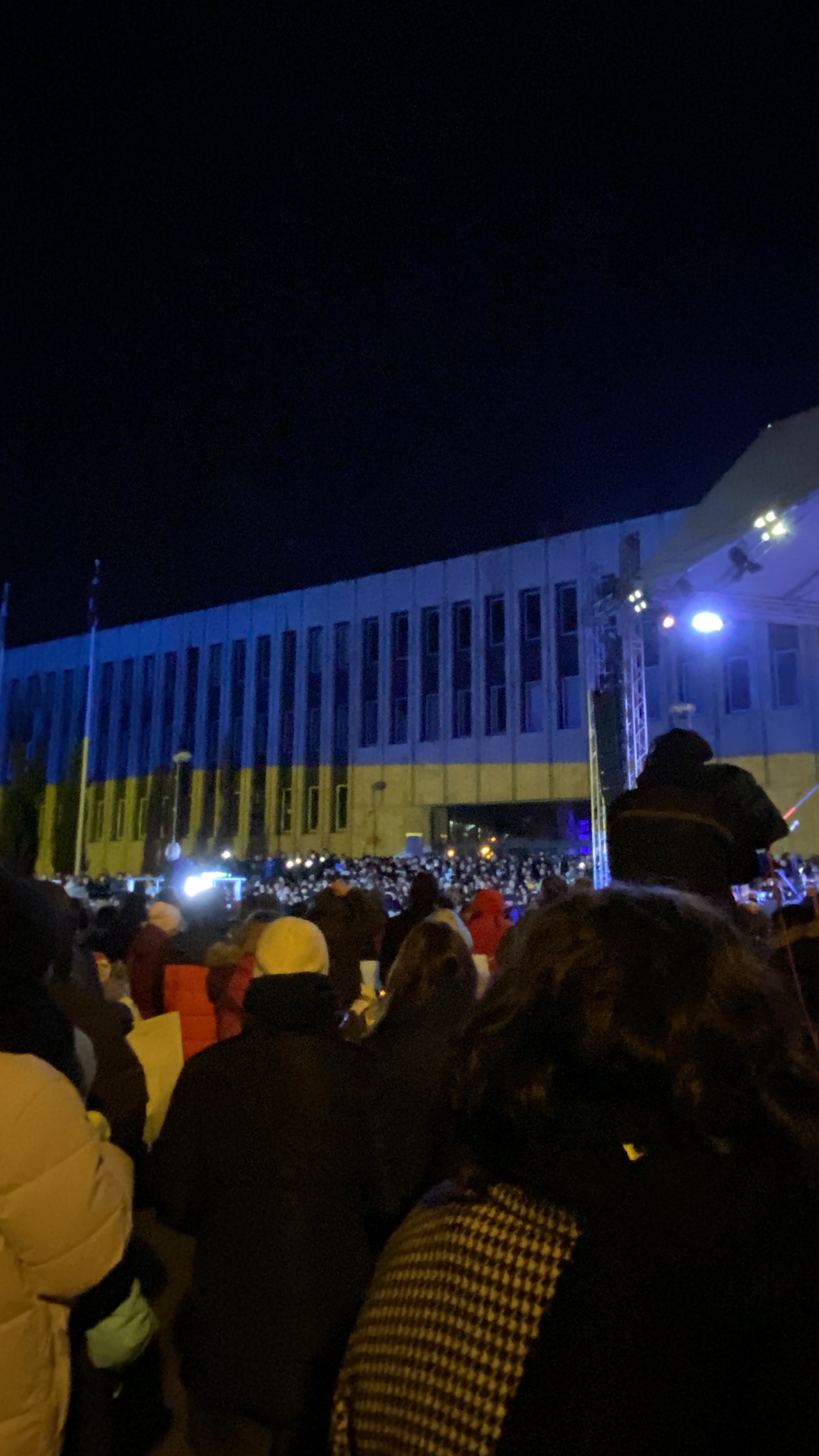 On Friday, I met up with Rasa in the evening, to go to this protest concert. It was on the square in front of the congress center, and it also happened to be across the Russian embassy. It couldn’t have been more perfect to protest the current war.