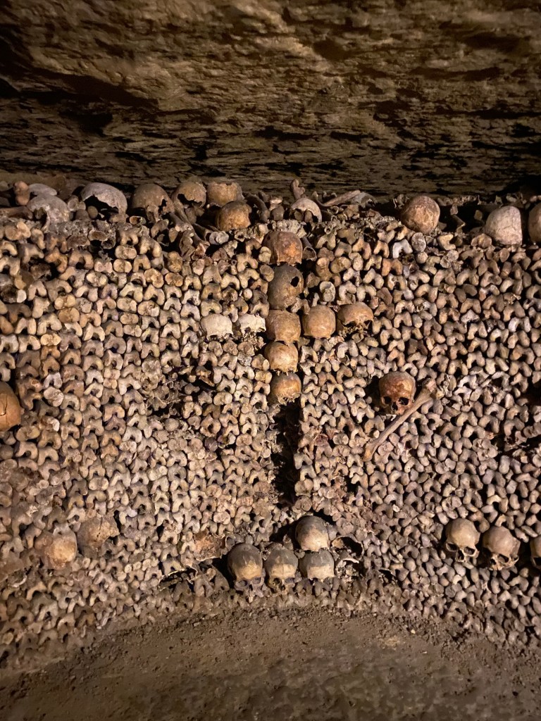 Yesterday, it was the day of the dead. At least, it was my turn to go down to the catacombs. I’ve had heard about this movie, As Above, So Below, and Erica reminded me of it, so a few days ago, I very smartly started watching it, but decided to finish it after I went down there myself, because my imagination can take over sometimes! Not the best idea ever, but walking down there wasn’t that bad. Just a lot of bones and skulls. But really, I think around 6 million Parisians have this as their final resting place, and not even half of it is open to public. Creepy, but cool to witness. And it connected nicely with the haunted tour as well, because he told us about this cemetery in the middle of the city, the Cemetery of the Innocents, where basically all the unknown people would be buried, like thieves, prostitutes, and became a mass grave before they transferred the bones to the catacombs.