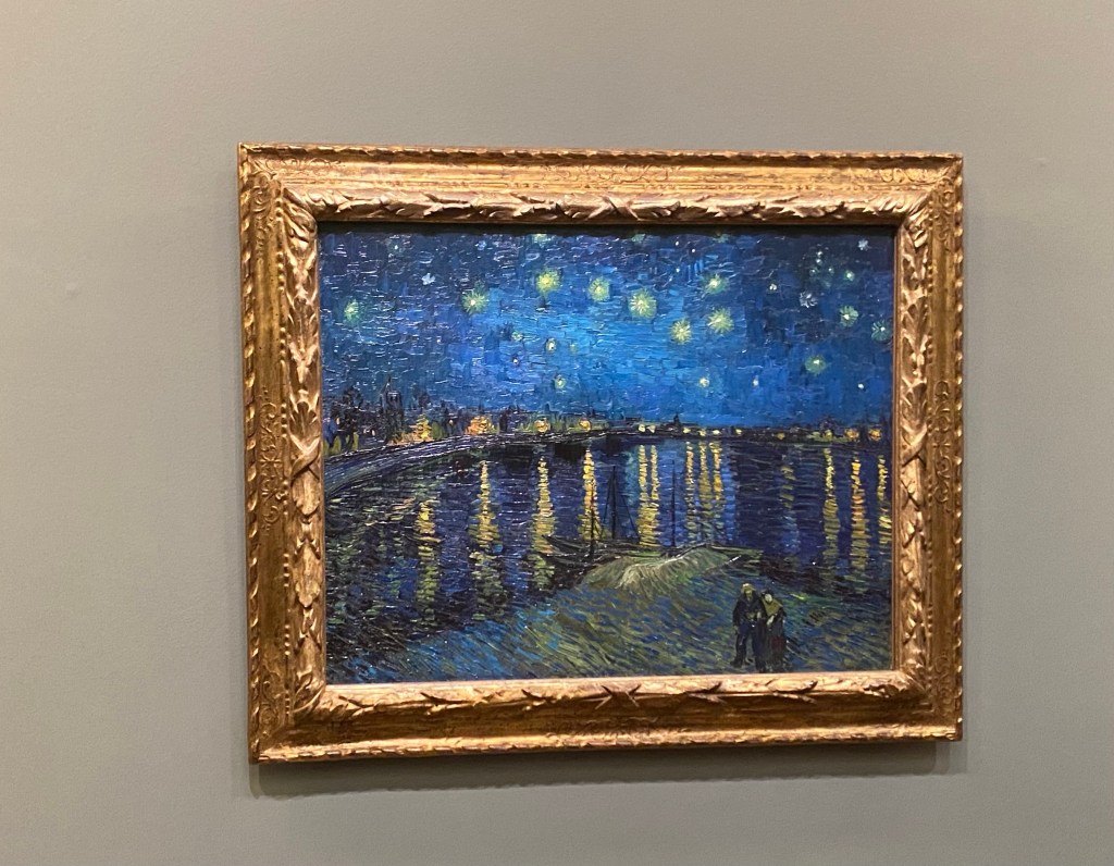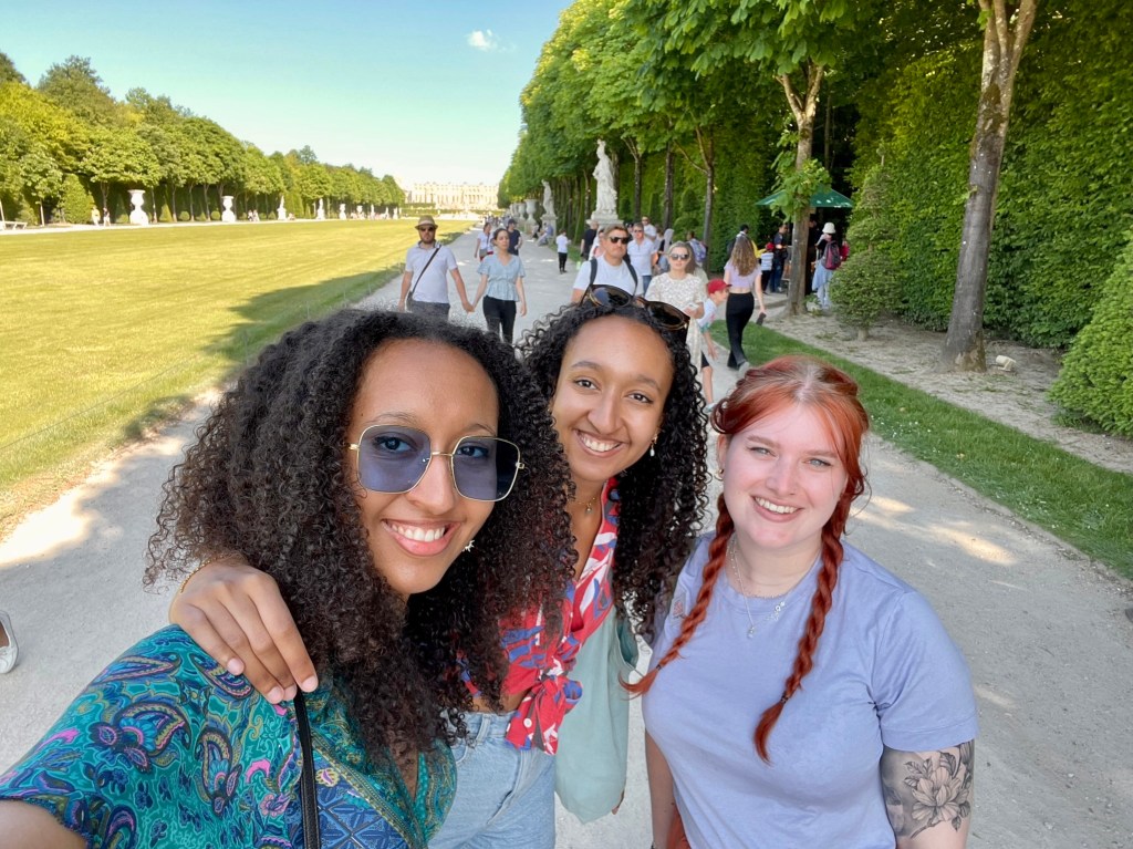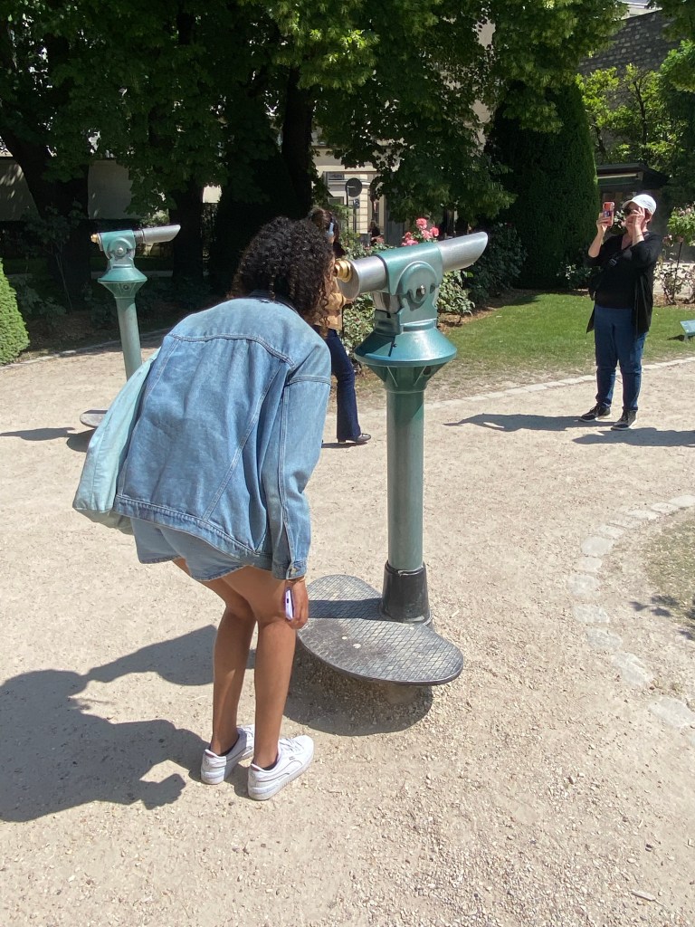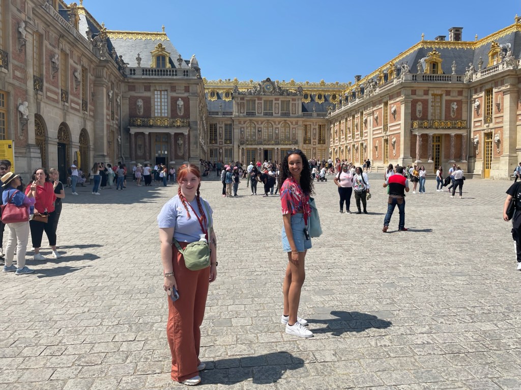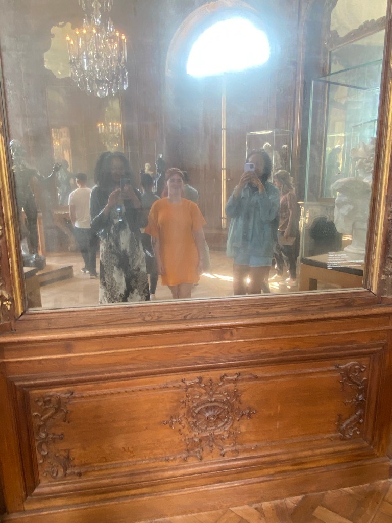 And we needed that rest, because we had Versailles on our schedule the next day! We got some breakfast at a local bakery and took the bus to our meeting point, where a big touring bus would be waiting for us. The lady who would drop us off at the palace had some useful information, our tickets, and the big and important announcement of our meeting point at the palace for the trip back to Paris. I don’t how many times she had said the meeting time, but she said it on the bus multiple times, and then at the palace as well. 10 minutes to 6. 5:50. Or for us Europeans, 17:50. No minute later. I found it a bit over the top, we’re not in high school anymore, aren’t we? But whatever, she must know why she would tell us over and over again. In the palace it self, I didn’t enjoy it that much, to be honest. We went from queu to queu, in this massive crowd of people, walking around so slowly, I just don’t have the patience for it. The last time I was in the palace, it was even worse, so I guess we were lucky, but still. It did help that we had the audio tour, so I got some information this time. We headed back outside, to stroll through the beautiful gardens. After a quick snack, we sat down under some trees, just to relax a little before heading back to the bus. We knew of the time, obviously, but our lovely Mila was so busy completing her daily DuoLingo streak, we were suddenly in a rush to get back on time. Walking with a brisk stride, we were exiting the gardens, when we realised we were officially late. But, to our defence, it was literally only 5 or 6 minutes, but our bus drove off in front of us. We tried to make eye contact with the driver, but he was so busy making it out of the parking lot, he didn’t notice us. Flabbergasted and also laughing our asses of for this stupid mistake, another guy from the company we got our tickets from, did notice us and told us we could take his bus back to Paris. He said the office had tried to call us, but couldn’t reach us. Which was not true, because neither of us had a missed call. But no worries, we claimed a spot on the next bus, and the lady bus driver smilingly shook her head. Must happen more often, right? So when we got back, we got some dinner where they lighted our steaks on fire. Pretty cool. We didn’t have that much time, we had a boat to catch! It took us along the Seine, showing the highlights of the city. We got back just in time to see the Eiffel tower light up and sparkle in the dark. Pretty exhausted, we just went back home after this long and intense day.