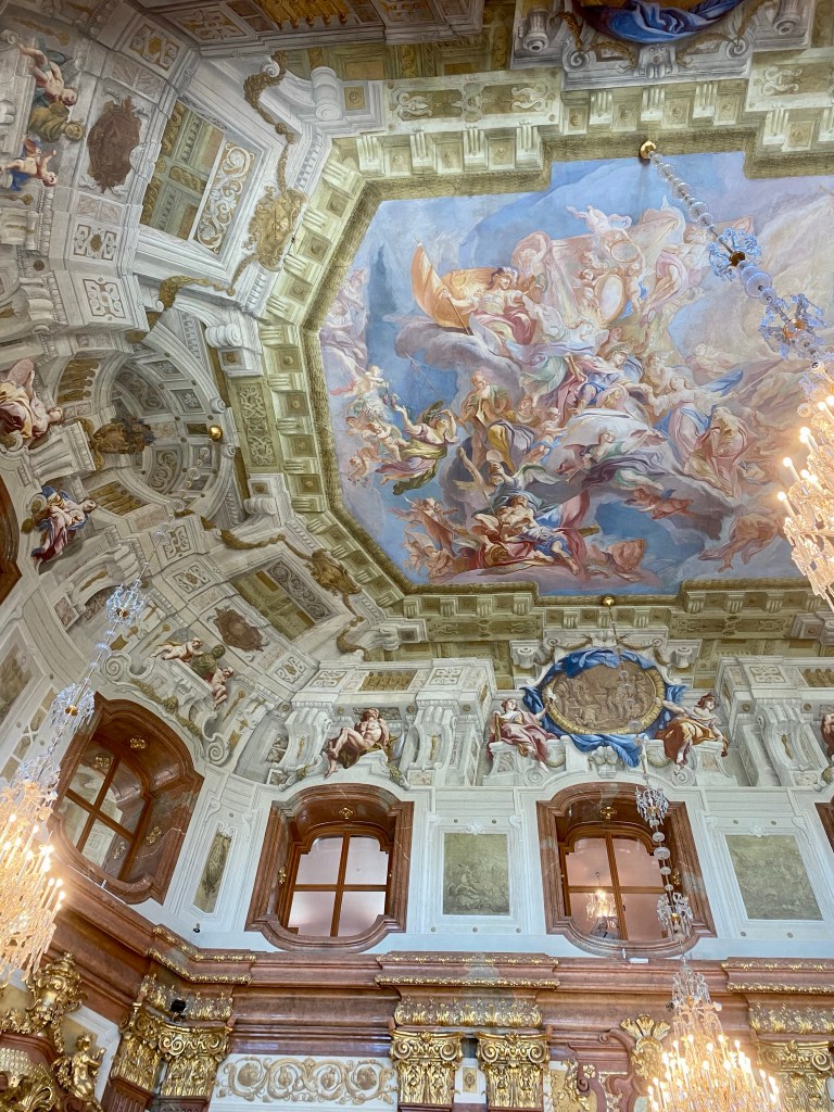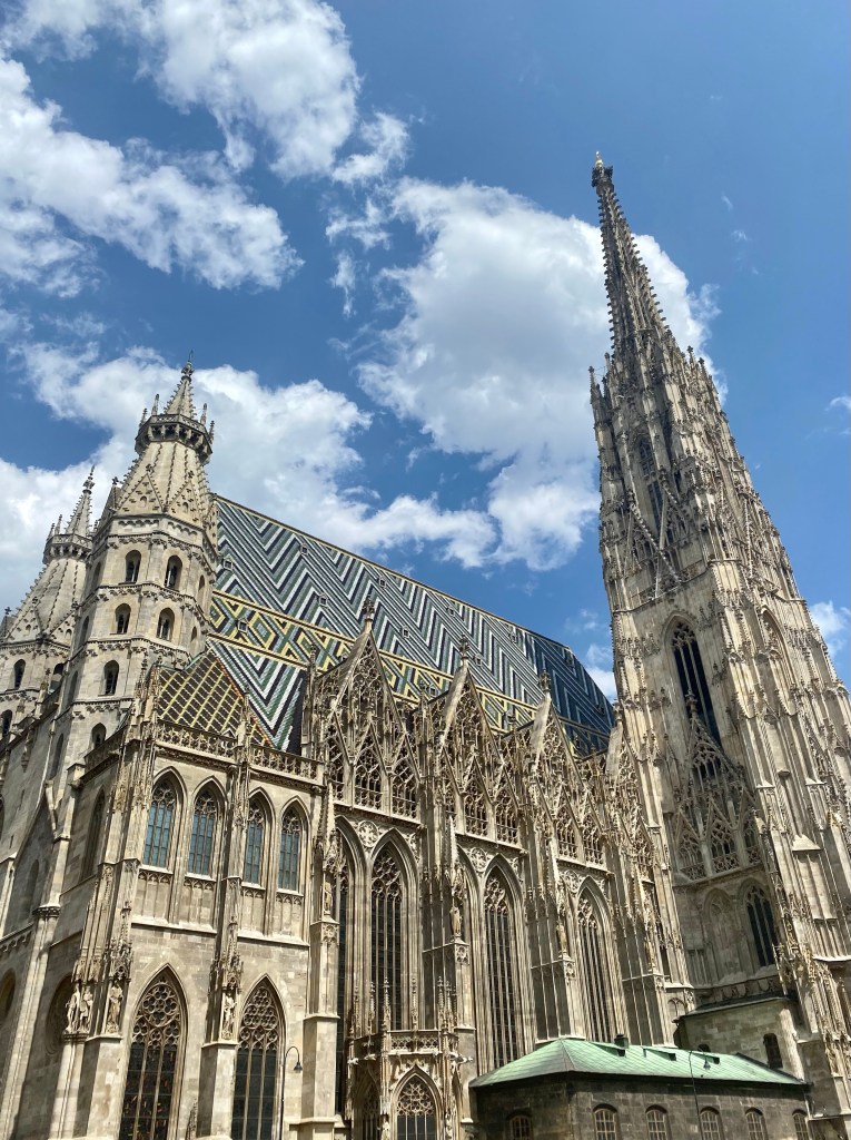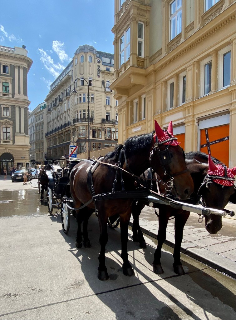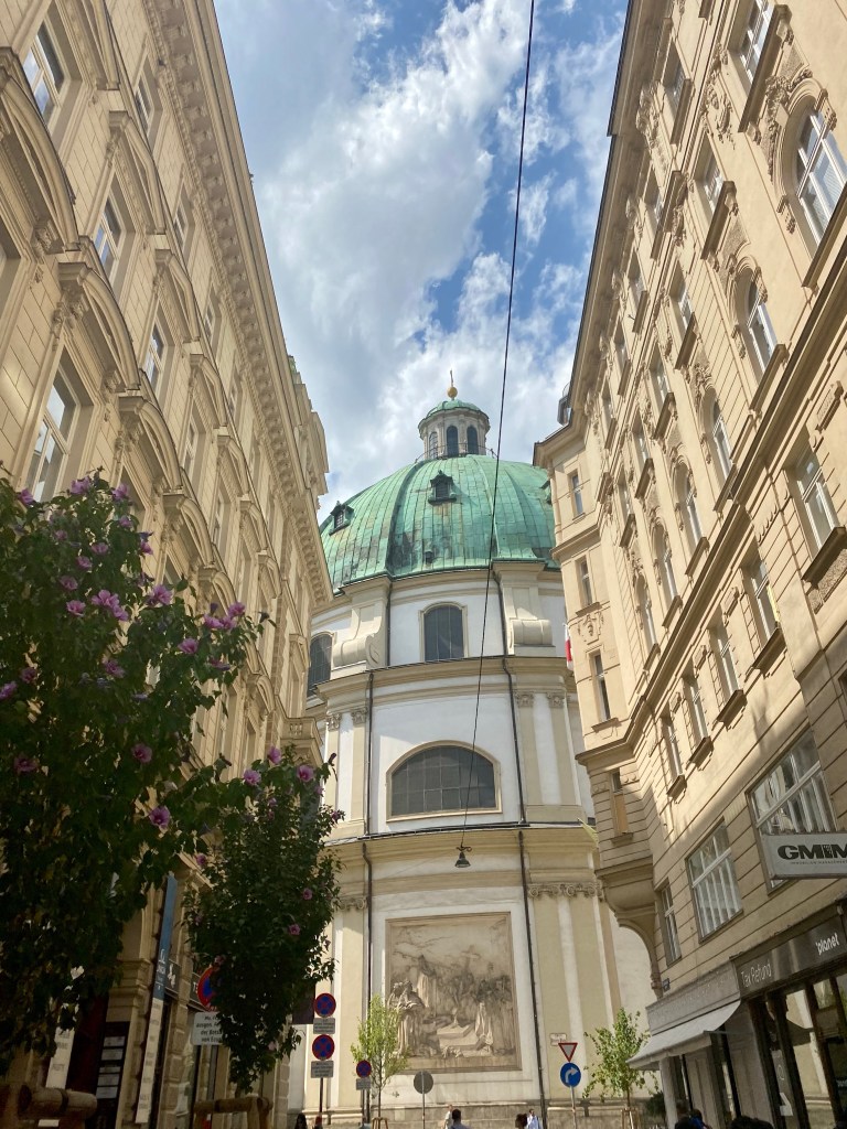 I followed up on my original route of seeing the big square of Stephanplatz, with its big cathedral and surrounding churches. Being warm, sweaty and thirsty, I quite quickly wanted to go back to the hostel, but I wandered around a little and found myself entering another church, St. Peterskirche, where a choir was having a public rehearsal. Of course, there was a little crowd, but there were not too many of us, and their voices sounded amazing in the churches acoustics. I made some videos, especially for my grandma, who sings in a church choir as well, so I had to send them to her, obviously! When I left the church, just around the corner was a whole police battalion surrounding a building, ready to arrest someone I presume. I didn’t stay to watch, even though a lot of people did.