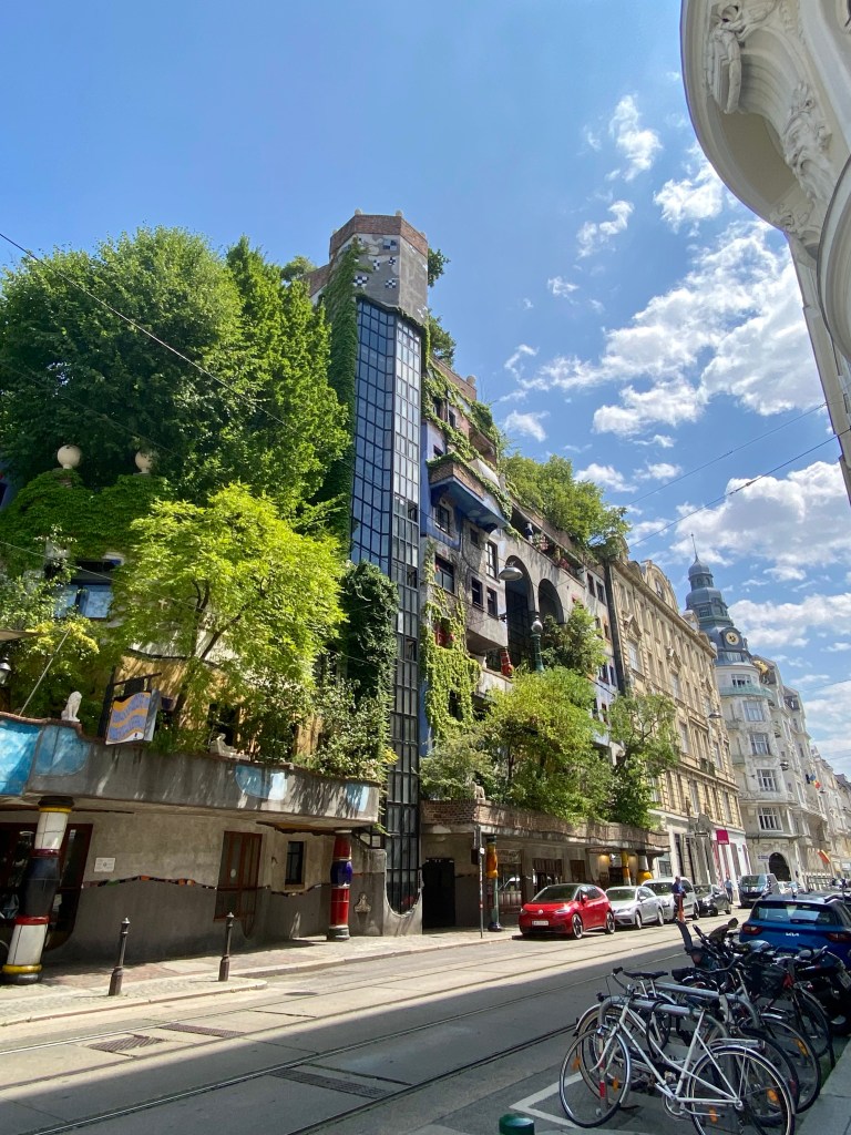 I really have to take a good look of what I told you guys last, all these days and cities seem to blend together. But, I had left off with my awaiting adventures in Vienna! So here is what happened! I woke up on, Tuesday (?), at a reasonable time, since it was already getting super warm, and I had agreed with myself of going for breakfast somewhere nice. Juliana, who had lived here, had send me a list of nice things to see and do, and one of them was the park surrounding Schönbrunn, a big and pretty castle. Not really sure what they used it for, now or back then, but it was quite big. I walked through the park after some vegan shakshuka, where there were a lot of random old ruins and fountains. I continued my way to the city centre, and as I was sitting in the metro, orientating myself, I realised that Gustav Klimt was born and lived in Vienna, and some of his paintings are exhibited here! So after a quick reservation for a ticket, I switched my way of transport and got to the Belvedere castle to see those paintings in real life! I was not disappointed, even though it was busy, it was worth it! I send some pictures to Ko and dad, where dad made me aware of another Viennese artist with artwork in the city, Friedensreich Hundertwasser. His art not being paintings, but buildings, I was intrigued and walked to one of the most famous ones. Mind you, it was around 30 degrees, maybe even a bit more, so I took my time and got sweaty soon enough. But, I was really glad dad had told me about it, it looked so cool! The people who live here now are aloud to make their spaces even more crazier and decorative than it already is, so there were some wonderful combinations happening.