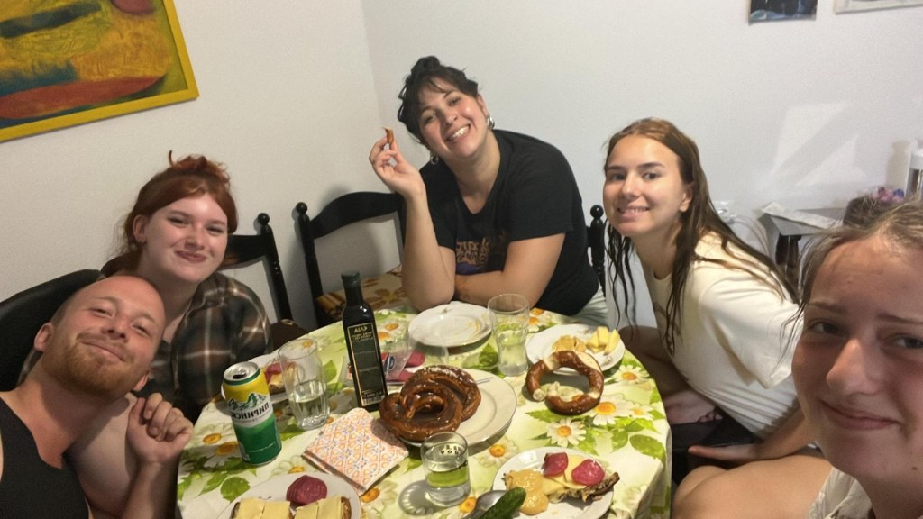 Next morning was our arrival day at our accommodation for the week, so I packed my backpack and took the metro to the National Training Center for Olympians. It was basically a catered hostel, with all the facilities we needed. I arrived a little after 12:00, and some people were already there, most of them Spanish. We welcomed each other and the following volunteers with open arms, and showed each other around the building. When we realised it would take a while for all of us to arrive, Kristaps, from Latvia, Sofia from Italy and Joaquin from Spain and me, went for a little walk to explore the neighbourhood. We found a big park, which was more a small forest in our eyes, but since we were hot and out of snacks, we made our way back quite quickly. When most of us had arrived, we went out for dinner in the city center. There are also some Bulgarian people who joined the project, so they can help us with translating when necessary, but fortunately most people in Sofia speak English. We ended up in a traditional Bulgarian restaurant, with authentic Bulgarian dishes, to get our first real experience. The food was amazing, simple but delicious, and after our meals we called it a night and went home.