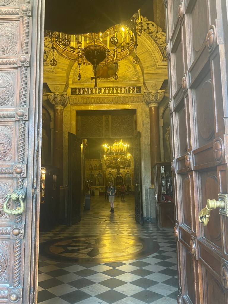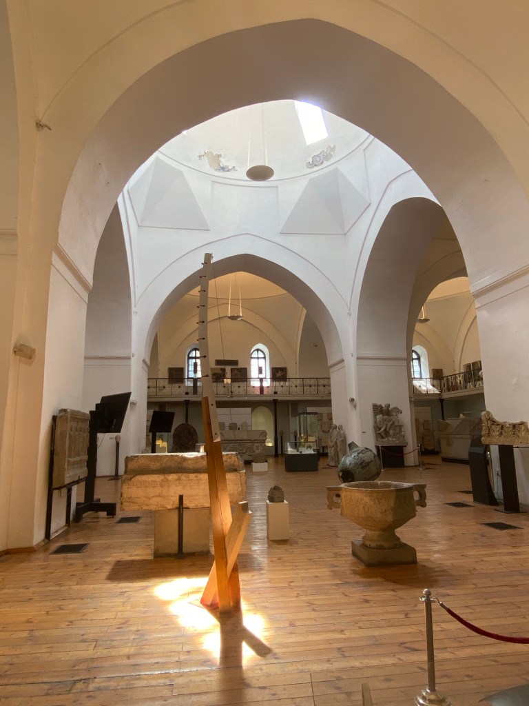 Sunday was the day to do some more exploring! Kate, Kristaps, Andrey, Janneke from the Netherlands, Milo from the USA and me went on our city tour. We started with breakfast, and made our way towards some archeological sites in the city. We visited some churches, one of which my grandma went to many years ago, to sing there with her choir. I wasn’t officially allowed to take pictures, but it felt to special to be there, so I took some sneakily. Afterwards we went to the archeological museum, and with history and archeological students, it was amazing, you can just follow along and listen to their stories. When we left the museum and were on our way home, we stumbled upon some people on the square casually doing traditional dances, so of course we had to stop and admire them. All of us, almost 50, went out for dinner together, and even though it was fun, it was a bit much so we went home after our late dinner.