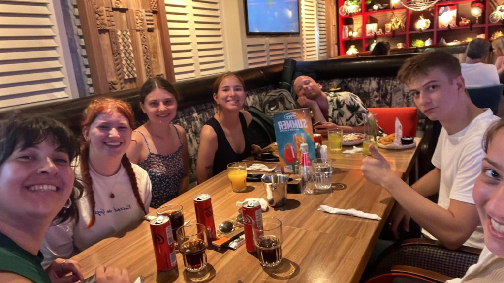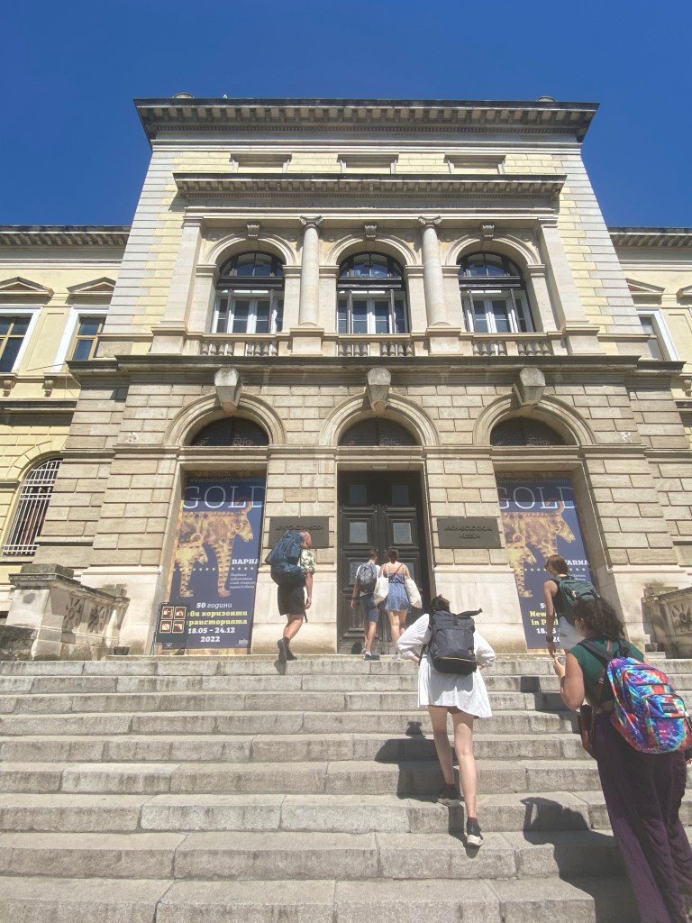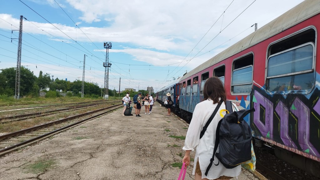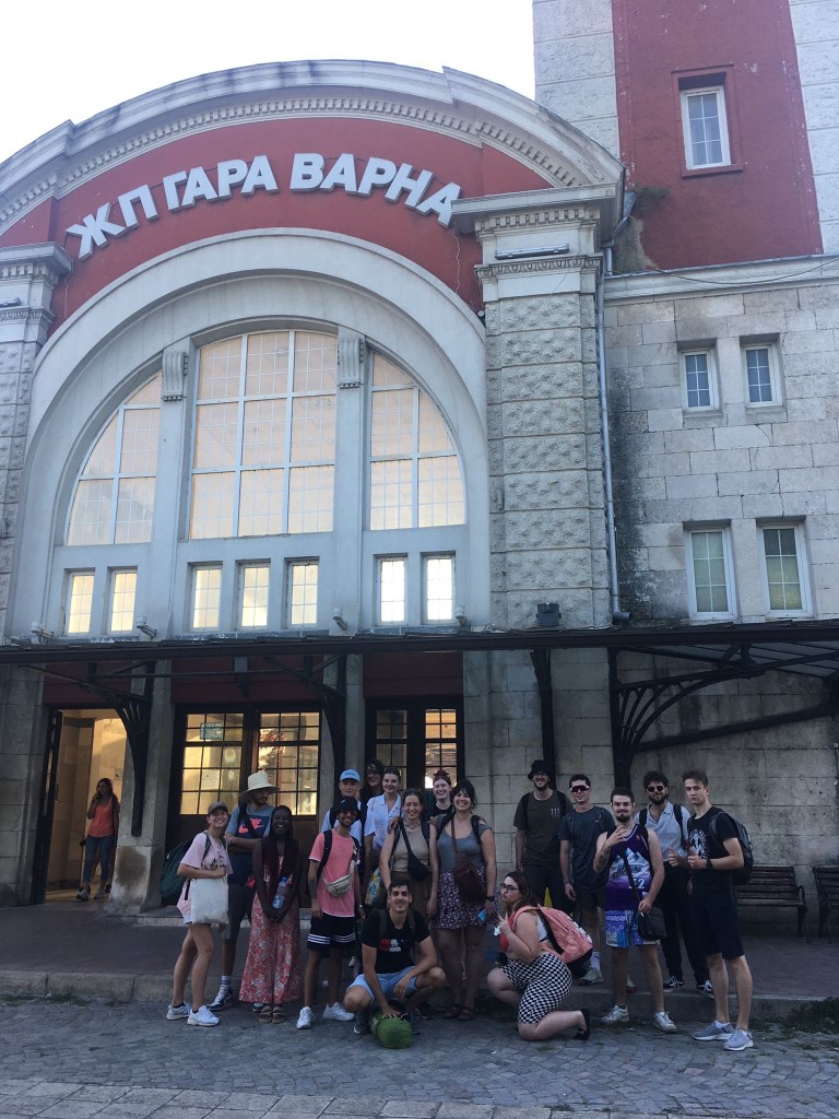 We had to gather at the museum again on Friday morning, for a tour in the archeological building. It was actually pretty big, with a lot of local artefacts and stories. We didn’t had that much time after though to get work done, because we had a train to catch to go to Varna for the weekend! So we headed home, got some groceries and packed our bags for our trip. Not all of us would go the whole weekend, but we were also meeting some other volunteers who are staying in Veliki Preslav, a town 20 minutes away by car. And I’m saying by car, because there is no direct train connection from Targovishte. So our Targovishte volunteers took the 30 minute walk to the train station and waited for half an hour for our train, which took us first to Shuman, where the others got in as well. We had two cabins to ourselves, and the difference between the excavators and the translators was pretty big. We had still some energy left, but the other guys had been up since 05:00, so they took their well deserved rest on the 2+ hour train ride. When we arrived in Varna, six of us, our household and Milo booked an Airbnb while the rest booked rooms in a hostel. So we split our ways for a little bit, and in our hostel we took a shower, and quietly decorated the house, for it was Milo her birthday the day before, and we surprised her with some balloons and a small birthday present. When everyone was done changing into their bathing suits, we made our way to the beach for some dinner and a late night swim. Most of the guys went out to the city for a small party, me and the girls went home for some sleep.