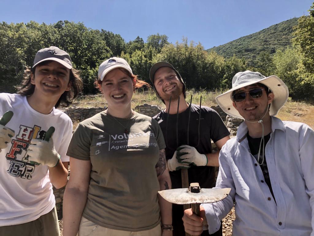 This morning, with work, we had a new project. It is just for this week, and five of us, met up at the museum at 08:00, and took the mini van up to the mountains. We got dropped off at the base of the mountain, and walked 30 minutes up hill towards an already finished excavation site. Our job this week is to spend a few hours a day cleaning the site, so that one of the volunteers, Juanvi, can make a drone video of the site. It was not a bad climb, but it was still 30 minutes up. There were some basilica’s from the 6th and 7th centuries, and there used to be a whole city in the mountains, and our final site, Missionis, contained the biggest church, together with some living quarters, one of them we are cleaning. It was a small workout, and also figuring out how the equipment worked, since it was pretty old school. We made friends with a lot of grasshoppers and some praying mantis, and around 11:15, we gathered our stuff and climbed down the mountain, back to the museum.