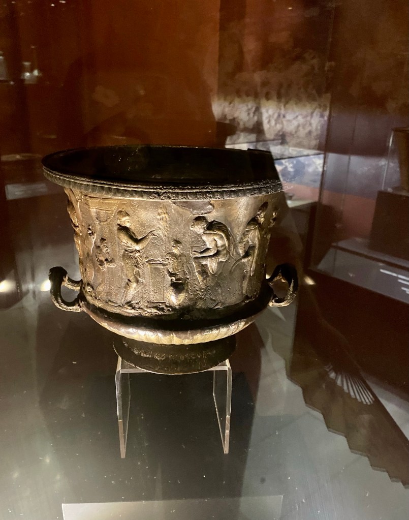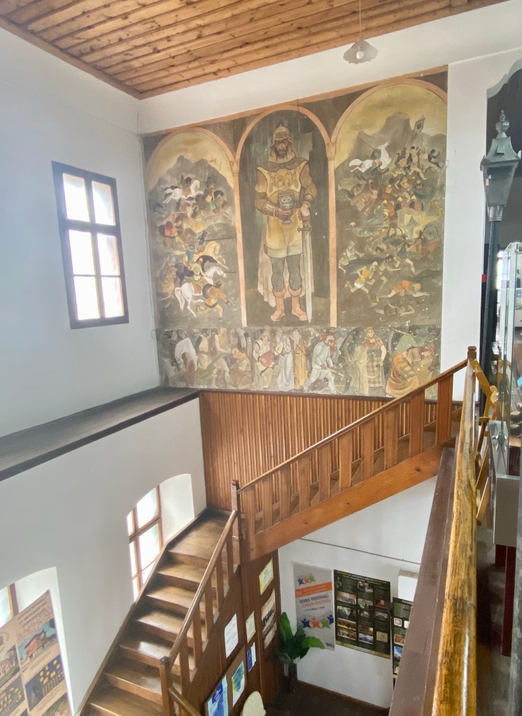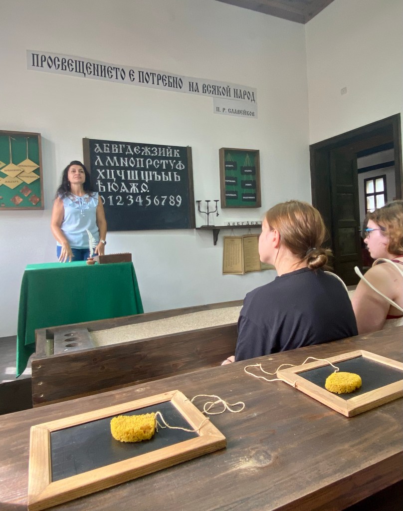 Our first day started at the museum, with the 11 volunteers here in Targovishte. It was a 10 minute walk for us, since we live in the city center and thus close by. We were introduced to the director of the museum and a few archeologists. Of course, everything needed to be translated, as the people here don’t or barely speak English. This was the job of our guide Rad, a 14 year old local boy, whose English, and apparently that of his friends, is incredible. He wasn’t really sure what he signed up for, but he did an amazing job. After all the introductions were done, they showed us around the small building. We would be working in the office part of the museum, and we had our own space upstairs. Not too big, and quite warm, we also got the option, if we wanted to, to work from home. Afterwards, we walked across the street to see the permanent and temporary exhibitions in the former school. In every classroom is a different exhibition of Bulgaria’s history, from a authentic classroom to the military.