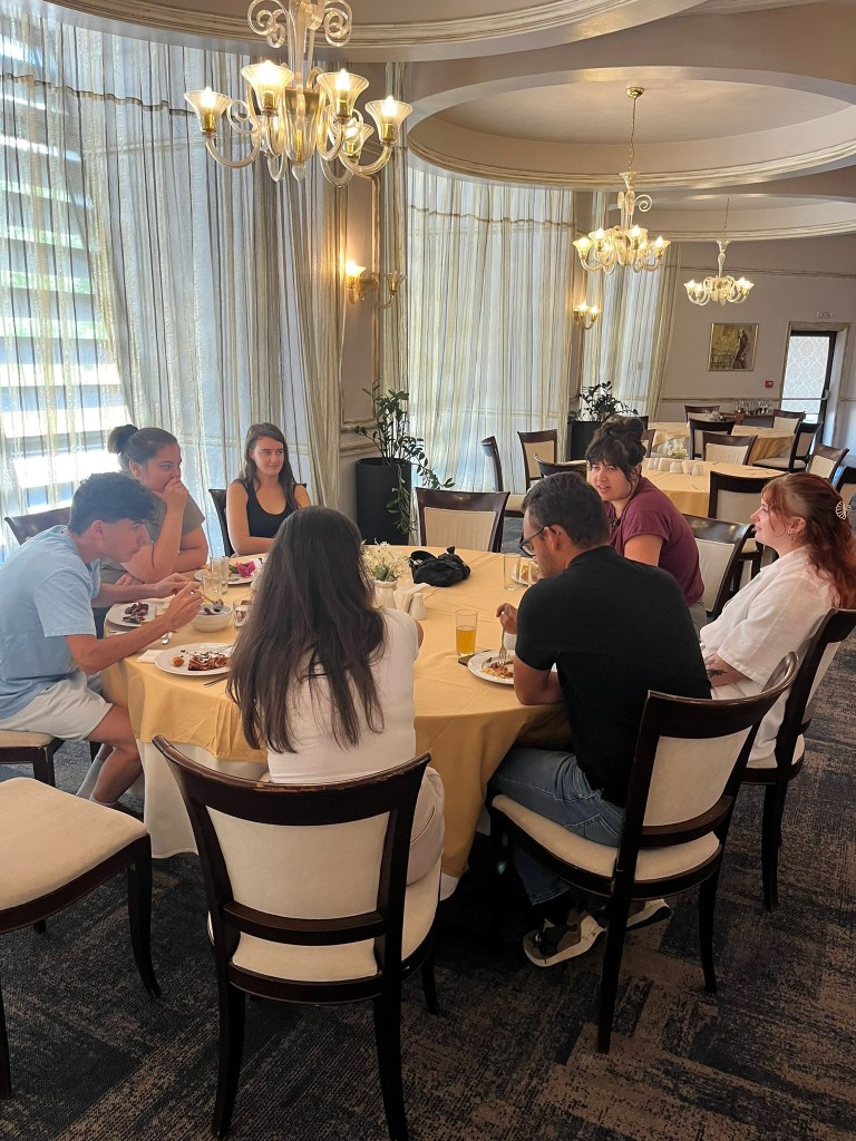 It took us around 5 hours to arrive in Sofia, where we met the people who went to Petrich, and that meant our small e flat family was reunited. Kate came running to us, needing to hugs so badly, we all missed each other since they had left. It was a short ride to the hotel, and they allowed us to choose our own roommates. E flat was back together! When we were refreshed from the journey, the 5 of us wanted to spend as much time together as possible before some of us would leave, so we walked to the mall that was next to the hotel. We had a late lunch, because we desperately needed food, even though dinner would be served in a few hours. It was so good to catch up and see each other again, we had so much to talk about. But we also needed to do some serious administrative work for Pepa, which took place in the house where the long term volunteers are staying. It was right in between the mall and the hotel, all super close to each other. When everyone had signed the papers, it was time for dinner. The hotel had arranged dinner for us, and we had the change to catch up with everybody. Some people I hadn’t seen since we left Sofia after that first week, so there were a lot of stories to tell. Pepa said a few words to close the project, and handed us our youth passes, which is like a certificate of participation, and two letters. One we wrote ourselves at the end of that first week, to our future selves, and one she wrote to us, a thank you to each of us. And then it was over. People had made plans for their days off in the next week, some are in Istanbul, others in North Macedonia and then of course some would go home already. We gathered around the piano in the hall, for some music and fun, but then it was time to say our goodbyes. Or in most cases, see you later. It is so special to meet strangers and become so close in such a short timeframe, be from all over the world with such different cultures, but somehow it works. The five of our family met in one of our rooms for some more quality time, but then as well it was time for teary hugs. Rūta and Ivanna would leave early in the morning for Skopje, and Andrey would leave for Prague, leaving Kate and me behind in Sofia. Not liking this at all, we basically just hugged each other and didn’t say that much, there was no need.